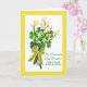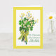 St. Patrick's Day Wishes, paper greeting card for an aunt and uncle. Celebrate the green and spring with this bright and colourful card in springtime colours of shades of green, yellow, and bright white. Photograph of a spring-coloured bow is tied around a bouquet. Art, image, and verse copyright © Shoaff Ballanger Studios, 2021.