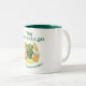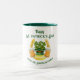 This St. Patrick's Day mug features a festive shamrock green and gold theme. The image features two beer mugs on either side of a leprechaun hat filled with four leaf clovers. A golden lucky horseshoe frames the image.