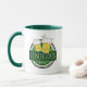 Festive St. Patrick's Day mug with an image of two beer mugs with foam, on a circle with the words "St. Patrick's Day". Mug colour is customisable.