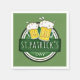 Festive St. Patrick's Day napkins with an image of two beer mugs with foam, on a circle with the words "St. Patrick's Day". Background colour is customisable.