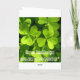 Celebrate a St. Patrick's Day birthday with Irish Shamrocks on this birthday card suitable for anyone born on the Irish holiday. Close-up clover photography with "Happy Birthday" text on the front and a greeting inside. Customise as needed.