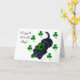 St. Patrick's Day Black Labrador Puppy Card for Labrador Fans! Cute and funny Labrador Retriever Painting painted by Naomi Ochiai from Japan. Adorable Black Labrador Puppy with St. Patrick's costume is playing with Shamrock leaf.