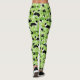 Cute St. Patrick's Day Border Collies wearing many shades of green with striped and heart sweaters with scattered four leaf clovers and dog bones on a green background.
