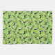 Cute St. Patrick's Boston Terriers wearing many shades of green with striped and heart sweaters with scattered four leaf clovers and dog bones on a green background.