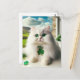 St. Patricks Day Cat Fluffy White Cat Green Eyes Postcard