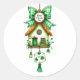 This charming watercolor-style artwork celebrates St. Patrick's Day with a whimsical touch. At the heart of the image is a quaint green house with a thatched roof, complete with tiny windows, a green door, and surrounded by lively clovers and lush greenery. Above the house, a large green gingham bow adorned with delicate lace detailing adds a festive flair, tying together the holiday spirit in a soft, artistic presentation.