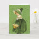 Green coloured glitter 4 leaves pattern, Clover leaf. Background, with a Scottish girl design on front holding a flower basket. Girl is dressed in St. Patrick’s Day theme. The image is available for a variety of products. Text adding is optional. This pattern was downloaded from http://www.pixelscrapper.com/