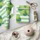 Perfect for St. Patrick's Day, this wrapping paper features a green and white striped background with green clovers. Great for festive events, place your order today!