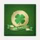 St. Patrick's Day illustration featuring a golden coin with shamrock and a ribbon displays "Happy St. Patrick's Day" in modern bold gold letters on an elegant green background.