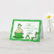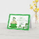 St. Patrick's Day paper greeting card with a bakery theme. If only greeting cards were edible! Dark chocolate dessert cupcake with Irish-creme frosting in delicious sugar swirls. Bunches of three-leaved clovers emerge out from the top of the frosting. Art, image, and verse copyright © Shoaff Ballanger Studios, 2021.