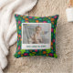 Create a fun photo gift for St. Patrick's Day. This throw pillow is ready to be customised with your photo and your own message. Your photo and message appear against a festive patterned background featuring simple hand-painted style illustrations of shamrocks, flowers and rainbows. The bright and colourful graphics are set against a dark teal background.