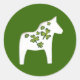 The design on this sticker is from a wooden horse carved, designed and painted by Julia Morrill