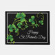 Doormat shown with a Black colour background and white border with a Happy St Patrick's Day print.