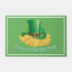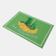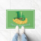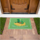 Doormat shown with a green colour background and white border with a Happy St Patrick's Day print.