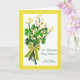 St. Patrick's Day Wishes! For a Dear Great-Grandma. This paper greeting card can be customised on the interior. Add a special message to the interior verse if desired. Digital design in greens and yellow with a photo of a ribbon-bow. Shamrocks, pussy willows, and flowering branches design. Art, image, and verse © Shoaff Ballanger Studios, 2021.
