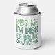 Celebrate St. Patrick's Day with this stylish and humourous can cooler! The bold green text "Kiss Me I'm Irish or Drunk or Whatever" adds a playful touch to your beverage. Perfect for Irish-themed parties or everyday use, it keeps your drink cold while showcasing your Irish spirit. Ideal for beer enthusiasts, partygoers, and social gatherings. A great gift idea for St. Patrick's Day or as a bar accessory!