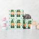 This is a fun illustration of garden gnomes styled for St. Patrick's day. They feature four leaf clovers and a bright orange beard.