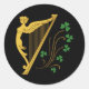 St Patrick's Day Gold Harp and Shamrocks Classic Round Sticker