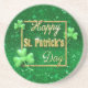 Elegant golden glitter glamourous St. Patrick's Day illustration featuring 3d gold typography inside a gold glitter border with classy shamrock clover on a precious green background.