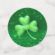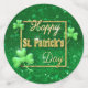 Elegant golden glitter glamourous St. Patrick's Day illustration featuring 3d gold typography inside a gold glitter border with classy shamrock clover on a precious green background.