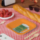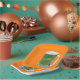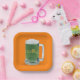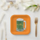 Green beer with lucky Irish shamrocks on orange background for St. Patrick's Day party.