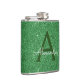 St. Patrick's Day Green Glitter & Sparkle Monogram Hip Flask