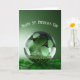 Happy St. Patrick's Day above a crystal globe of shamrocks. Very modern.