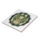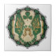 Tile with traditional vintage St. Patrick's Day poster with flags, shamrocks, green and gold colours, and "Ering Go Braugh" on green background.
