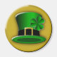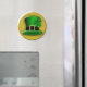 St Patrick’s Day: Leprechaun Hat © Sunny Mars Designs. This round magnet features a green leprechaun hat a black band around it, a gold buckle and a shamrock attached to it.