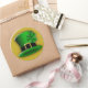 © Sunny Mars Designs. St Patrick’s Day Green Leprechaun Hat Custom Round Stickers – These adhesive stickers feature a green leprechaun hat with a black band around it, a gold buckle and a shamrock attached to it.