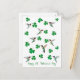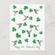 Whimsical St. Patrick's Day postcard with hand-painted ruby-throated hummingbirds and shamrocks.