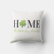 A St. Patrick's Day home polka dot shamrock personalised pillow is festive and features a green and white polka dot design on a shamrock in the centre as the O. It can be customised with a personal touch, such as a name, initials, or a special message, to make it unique and meaningful. This pillow can be a great addition to your St. Patrick's Day home decor or a fun gift for someone who loves to celebrate this holiday. The vibrant green and white colours and the playful polka dot pattern make it a cheerful and eye-catching decoration that will bring some luck of the Irish to your home.