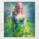 Digital ai artwork of a St Patrick's Day Irish fairy wearing a green and blue dress with three leaf clover and butterflies.