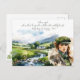 St. Patrick's Day postcard featuring a watercolor illustration of the picturesque Irish countryside with lush green hills, a gentle stream and an Irish cottage in the background and a young woman with striking red hair wearing a green plaid flat cap and a tweed jacket with a poised and confident, expression emphasizing independence and strength. A quote at the top reads: "She is a girl and would not be afraid to walk the whole world by herself" - Lady Augusta Gregory - Poet. Watercolor shamrocks in lower left corner on reverse.