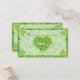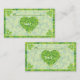 St. Patrick's Day Irish wedding place card, featuring a green white pattern and an elegant heart made of Irish green lucky clover/shamrock.