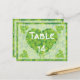 St. Patrick's Day Irish wedding table number postcard, featuring a green white pattern and an elegant heart made of Irish green lucky clover/shamrock.