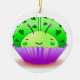 A sweet green St. Patrick's Day ladybug cupcake with shamrock sprinkles on an ornament.