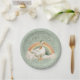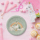 This whimsical St Patrick's Day paper plate features a duck wearing a green hat standing in front of a rainbow with the phrase "lucky ducky."