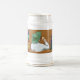 Cool White with Gold Trim Beer Stein Featuring St. Patricks Day man with Hat Drinking Beer Design