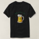 Men's short sleeve t-shirt is shown in black with a festive St. Patrick's Day beer print.