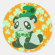 A cute, green, cartoon panda, wearing a green Leprechaun top hat, with a belt buckle, and a clover on it. The little panda is also wearing a clover printed, green, bow tie. Very cute and colourful. Great for anyone looking for St. Patrick's Day, or Irish themed stuff.