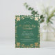 This classy and elegant Saint Patrick's Day (St. Paddy's Day) invitation postcard features a "gold foil" (simulated) four-leaf clover (shamrock) border and the words "St. Patrick's Day Celebration" in a matching gold script font. The background is green, but can be changed to any colour of your choice. The details of your event can be customised to any colour or size font of your choosing. An easy and inexpensive way to invite guests to your Irish themed celebration!