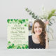 This charming photo invitation, with shamrock borders, is featured for a bridal shower but well-suited for any happy celebration such as birthday's, baby showers, anniversaries and more. (FP). (<a href='http://www.freepik.com/free-photo/smiling-woman_966215.htm'>Designed by Freepik</a>). <br/><br/>The card is easy to customise with your wording, font, font colour and choice of six paper types.<br/><br/>Not exactly what you're looking for? All our products can be custom designed to meet your needs at no extra charge.<br/><br/>Simply contact us at askpixieprints@aol.com.<br/><br/>Coordinating products available: