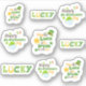 Lovely stickers, this St. Patrick's Day design features lovely quotes. Quotes such as "Lucky", "May the Luck of the Irish be with you", and "Happy St. Patrick's Day". Order yours today!