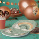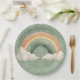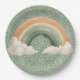 These whimsical St Patrick's Day paper plates features a watercolor rainbow with a coordinating green and white polkadot background.