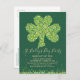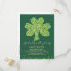 This festive St. Patrick's Day (St. Paddy's Day) party invitation postcard features a Kelly green background and shamrock made of green and gold confetti. The words "St. Paddy's Day Party" are in a fun, modern script font. Change the text to customise the card for your special Irish themed celebration.