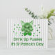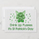 He's mangy, green and wearing a bow tie. He's the St Paddy's Day scrapper cat and he says "Drink up Pussies, it's St. Patrick's Day."
