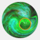 ST PATRICKS DAY SHAMROCK IN BLUE GREEN FRACTALS CLASSIC ROUND STICKER