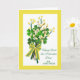 Send a big bouquet of Irish luck to a newlywed couple for St. Patrick's Day. An arrangement of clovers, shamrocks, branches with tiny yellow flowers, and pussy willows are tied together with a photograph of a bow (not real). Art, image, and verse copyright © Shoaff Ballanger Studios, 2021.