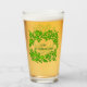 This clear glass has a shamrocks / clover circular pattern in Green on both front and back. Text of Happy St. Patrick's Day written inside the oval.